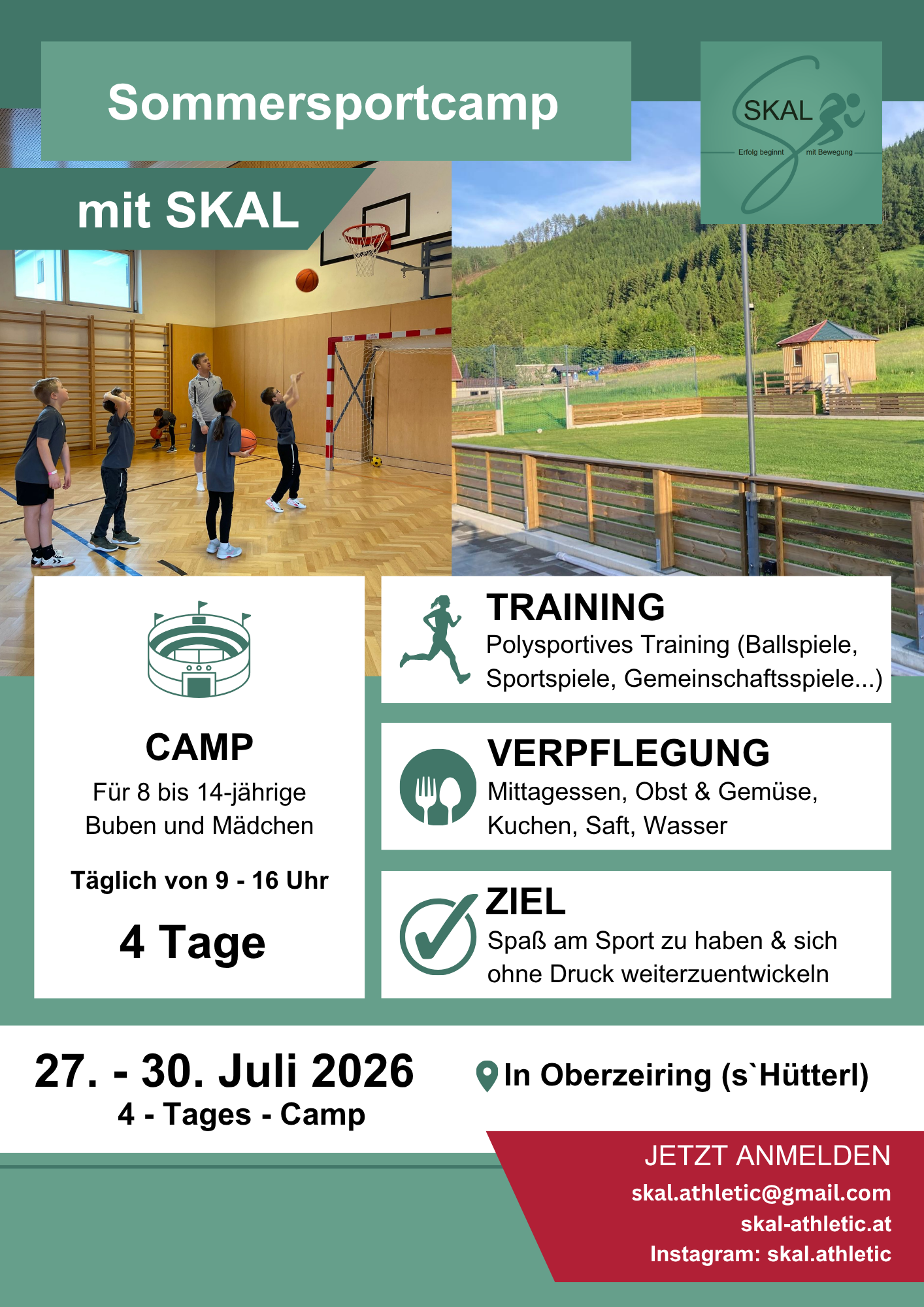 Du bist zwischen 8 und 14 Jahren und möchtest deine Sommerferien aktiv, spannend und gemeinsam mit anderen Kindern verbringen? Dann komm in unser Sommersportcamp 2026 und erlebe eine unvergessliche Woche voller Sport, Spiel und Spaß!
